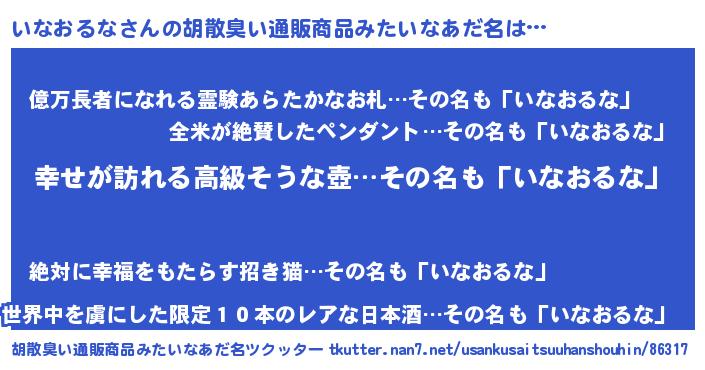 | ヒーロー風カッコイイあだ名 | 『ウルトラいなおるなマン』 |