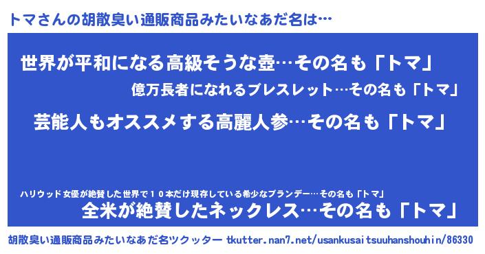 | ヘコむあだ名 | 『レバニラ』『トマっぺ』『トマにー』 |