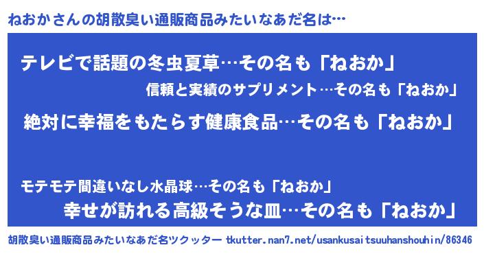 | ヘコむあだ名 | 『ねおか(笑)』『なまこ酢』 |