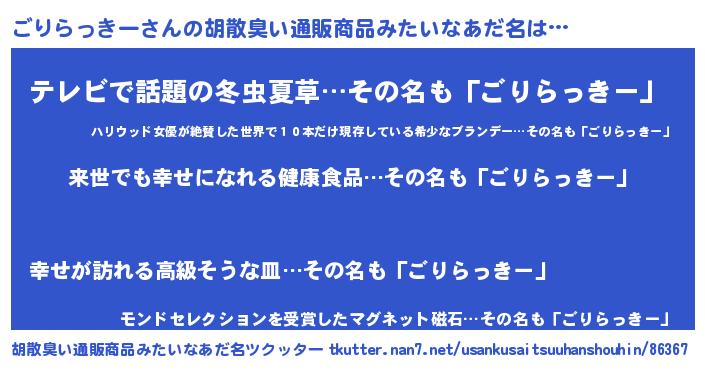| 意味不明あだ名 | 『永久保存ごりらっきー』 |