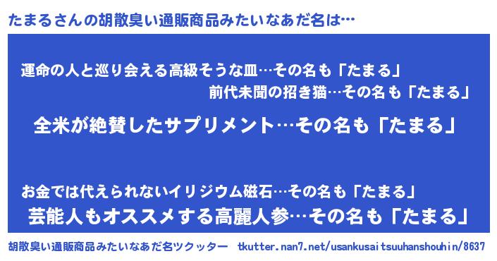 | ヘコむあだ名 | 『たまを』『酢こんぶ』『たまもー』 |
