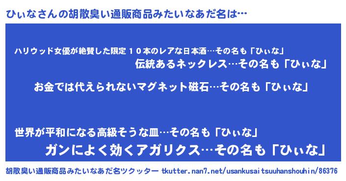 | ヒーロー風カッコイイあだ名 | 『友情の使者ひぃな』『仮面ヒィダー』 |