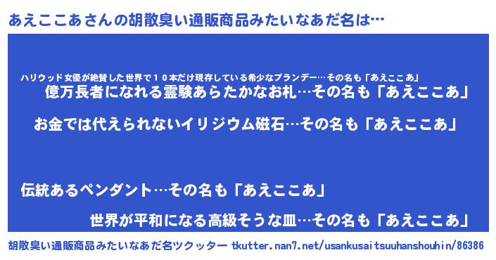 あえここあさんの胡散臭い通販商品みたいなあだ名をツクッター!