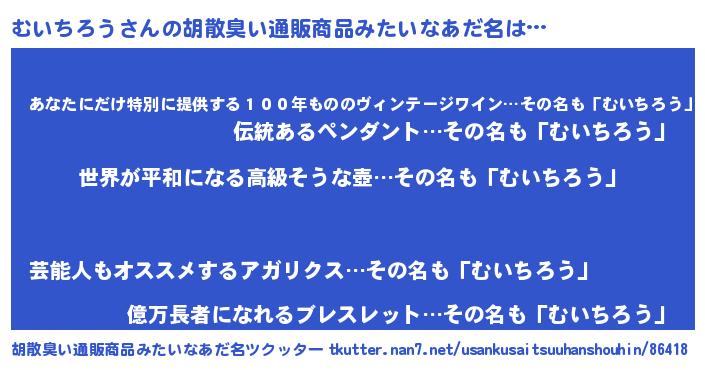 | 欧米人風あだ名 | 『アンジェラ・むいちろう』 |