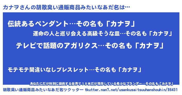 | ヘコむあだ名 | 『カナっ子』『なまこ酢』 |