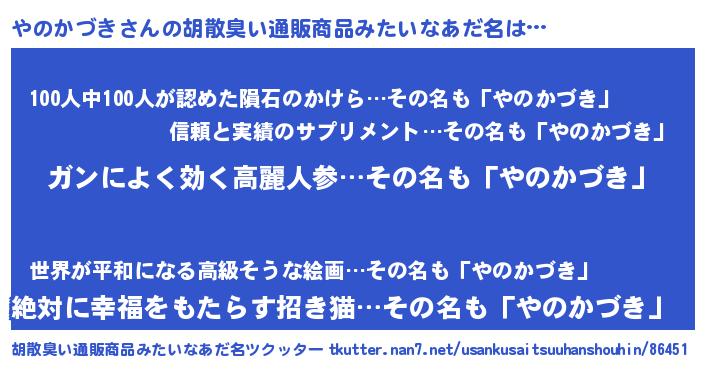 やのかづきさんの胡散臭い通販商品みたいなあだ名をツクッター!
