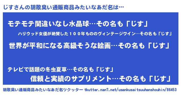 | 男性向けラノベタイトル風あだ名 | 『冴えないじすの育てかた』『じすの憂鬱』 |