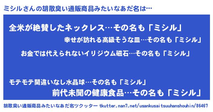 | ヒーロー風カッコイイあだ名 | 『愛の使者ミシル』『天弓騎士ミシ』 |