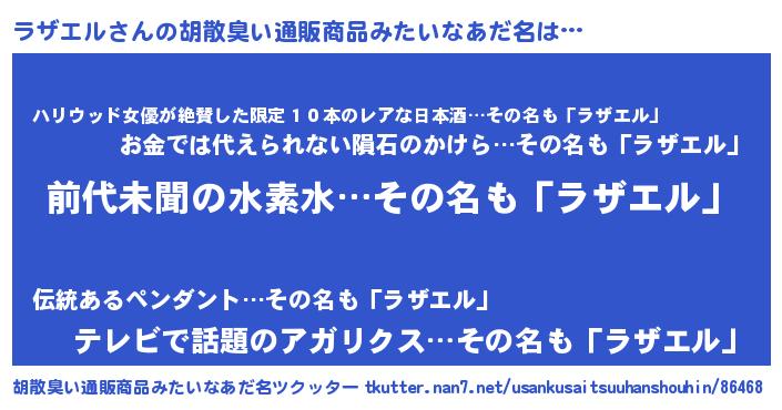 | 恥ずかしいあだ名 | 『ラザちん』『ラザエルデラックス』 |