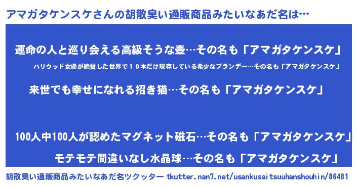 | 意味不明あだ名 | 『永久保存アマガタケンスケ』 |