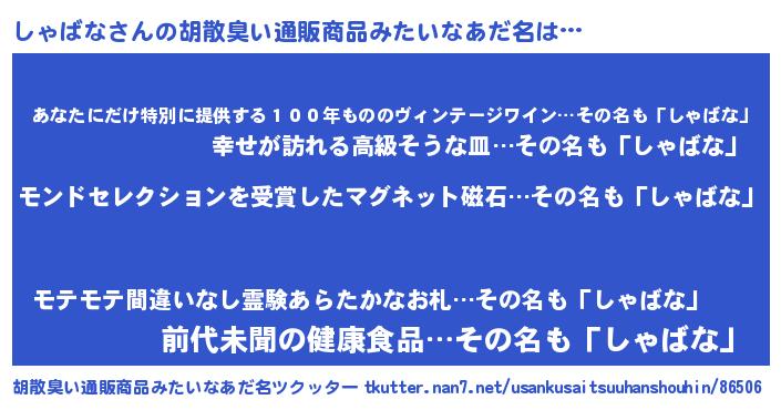 | 欧米人風あだ名 | 『ダニエルしゃばな』『マイケルしゃばな』 |