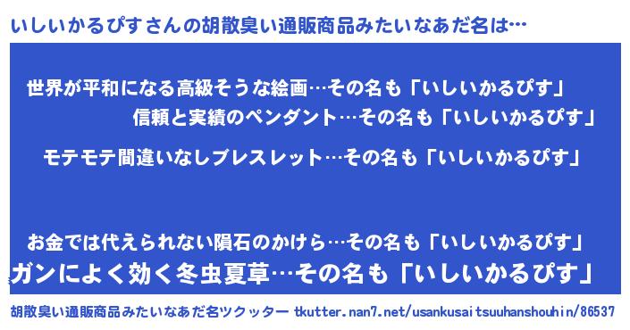 | 意味不明あだ名 | 『ペロリンいしいかるぴす』 |
