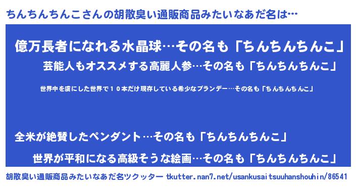 | 意味不明あだ名 | 『住所不定無職ちんちんちんこ(95歳)』 |