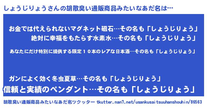 | ヘコむあだ名 | 『しょっ子』『しょうじりょう(笑)』 |