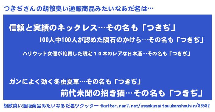 | 欧米人風あだ名 | 『ダレノガレつきぢ』『ウサインつきぢ』 |