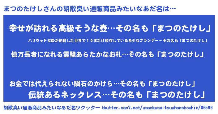 | ヒーロー風カッコイイあだ名 | 『スーパーマツノタケシ』『銀牙騎士マツ』 |