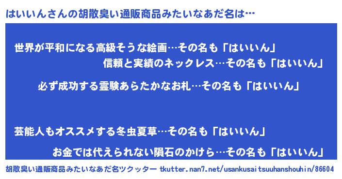 | ヒーロー風カッコイイあだ名 | 『スーパーハイイン』『愛の使者はいいん』 |