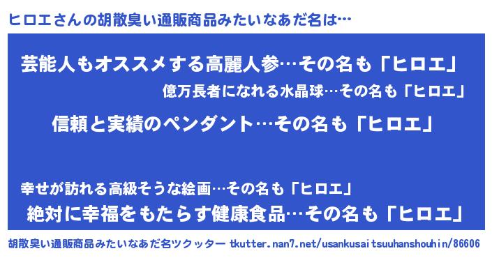 | 恥ずかしいあだ名 | 『ヒロリンリン』『ヒロエデラックス』 |