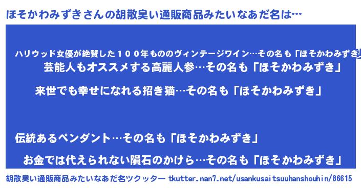 | 可愛いあだ名 | 『ほそぷりん』『ほそかわみずきママ』 |