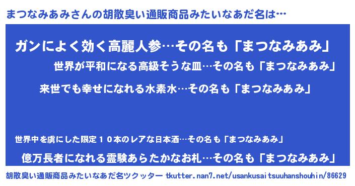 | ヘコむあだ名 | 『まつなみあみ(震え声)』『まつふぇ~』 |