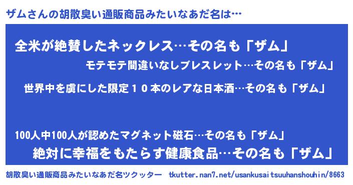 | ヘコむあだ名 | 『ザムっ子』『ザム(笑)』『ザムにー』 |