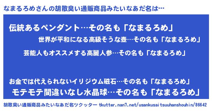 | ヒーロー風カッコイイあだ名 | 『最強戦士ナマルロメ』『銀牙騎士ナマ』 |