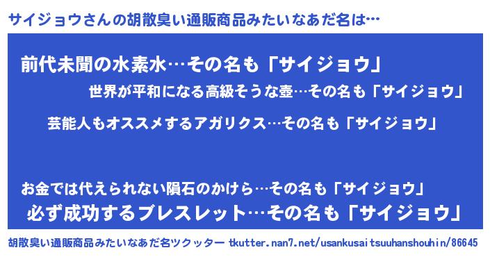 | ヘコむあだ名 | 『サイジョウ(笑)』『サイもー』 |