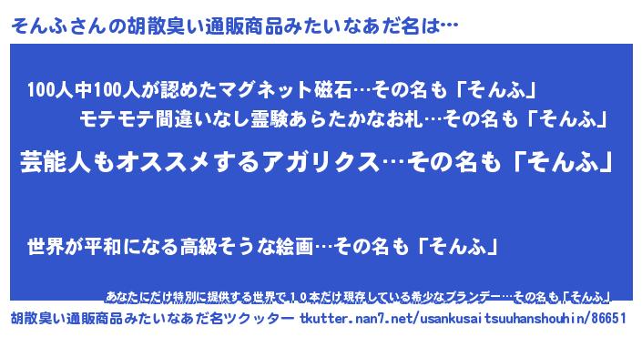 | ヘコむあだ名 | 『そんふぇ~』『牛乳』『そんふ(爆)』 |
