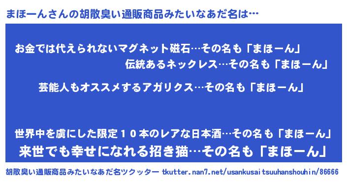 | ヒーロー風カッコイイあだ名 | 『究極戦士マホーン』『愛の使者まほーん』 |