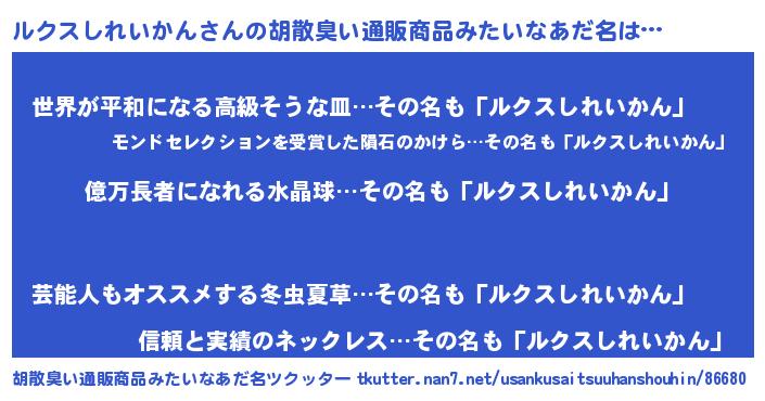 | 意味不明あだ名 | 『ペロリンルクスしれいかん』 |