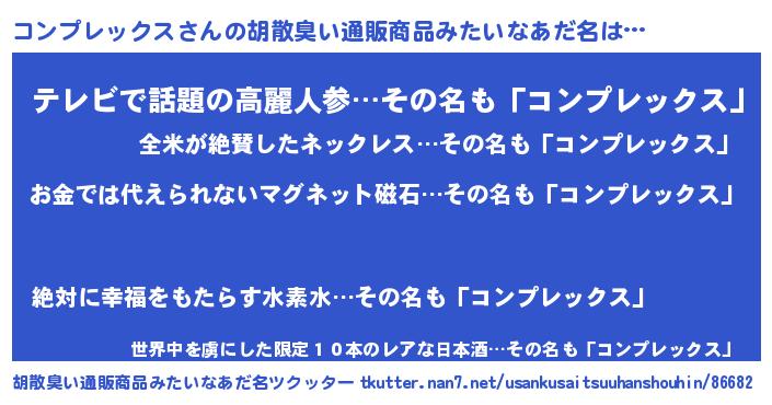 | ヘコむあだ名 | 『コンを』『コンプレックス(遠い目)』 |