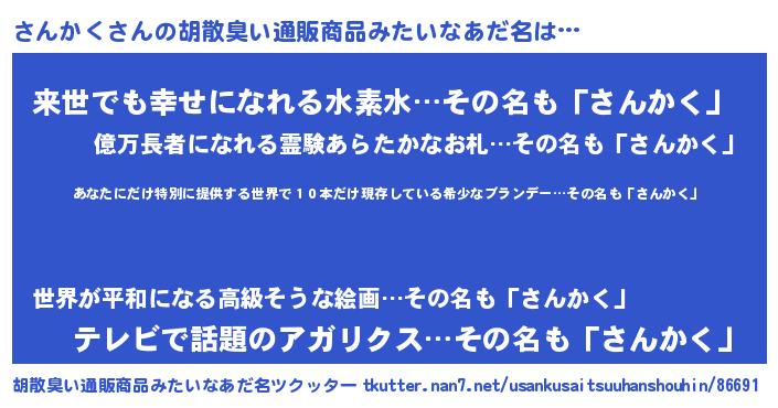 | ヘコむあだ名 | 『さんかく(遠い目)』『さんもー』 |