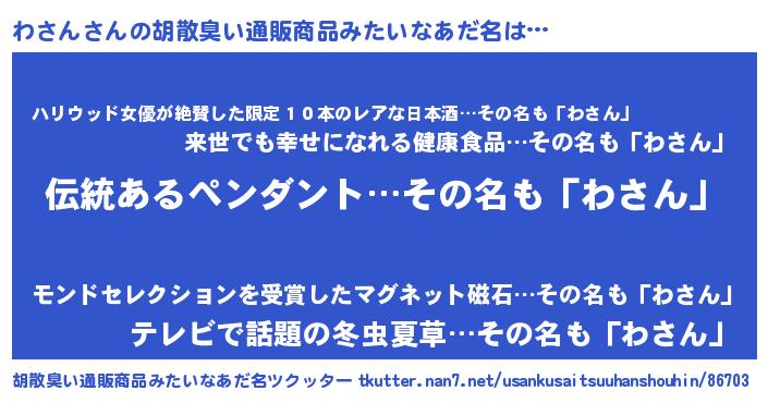 | 欧米人風あだ名 | 『ウサインわさん』『ダレノガレわさん』 |