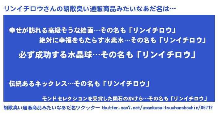 リンイチロウさんの胡散臭い通販商品みたいなあだ名をツクッター!
