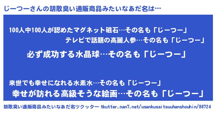 | 男性向けラノベタイトル風あだ名 | 『じーつーの憂鬱』 |