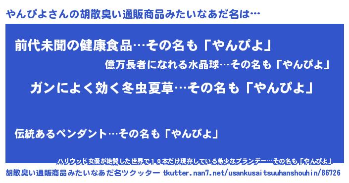 | 意味不明あだ名 | 『自称やんぴよ』『永久保存やんぴよ』 |