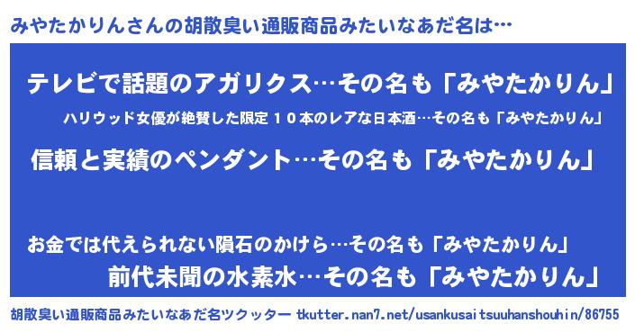 | 意味不明あだ名 | 『とにかく怪しいみやたかりん』 |