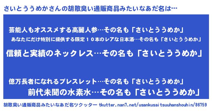 | 意味不明あだ名 | 『とにかく怪しいさいとううめか』 |