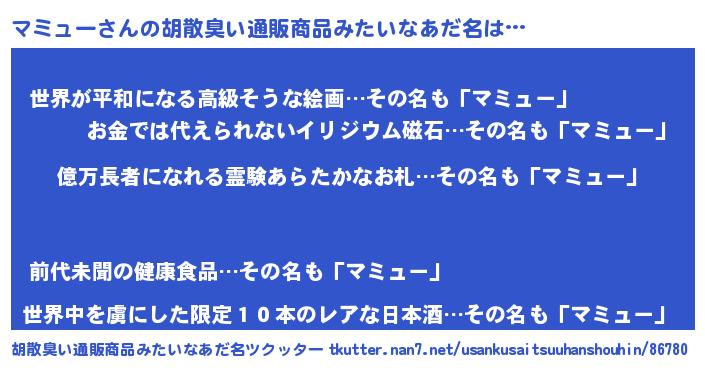 | ヘコむあだ名 | 『マミもー』『豆乳』『マミュー(笑)』 |
