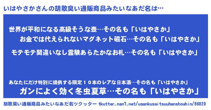 | ヒーロー風カッコイイあだ名 | 『スーパーイハヤサカ』『仮面イハダー』 |
