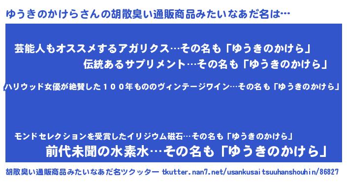 | ヘコむあだ名 | 『ゆうきのかけら(小並感)』『ゆうっ子』 |