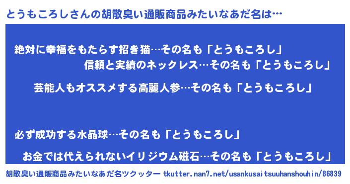 とうもころしさんの胡散臭い通販商品みたいなあだ名をツクッター!
