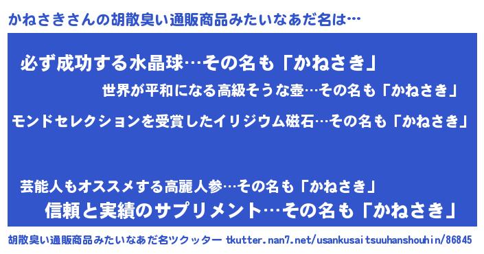 | ヘコむあだ名 | 『かねにゅー』『かね太郎』『つくし』 |