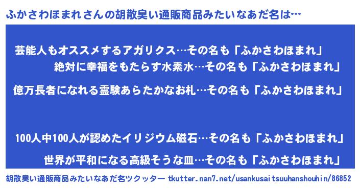 | 恥ずかしいあだ名 | 『プリティーふかさわほまれ』『ふかちん』 |