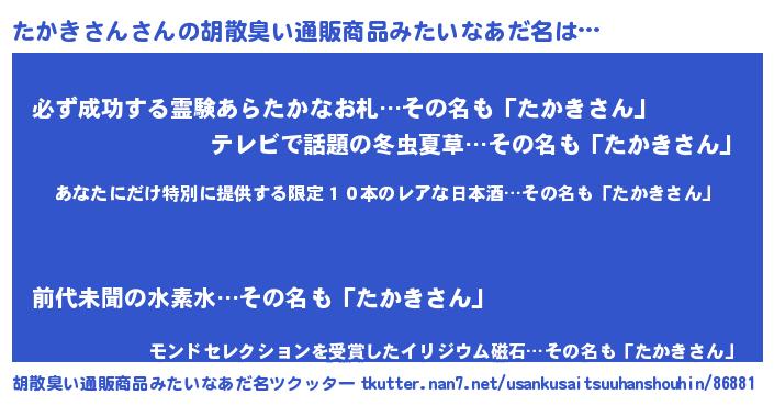 | 意味不明あだ名 | 『住所不定無職たかきさん(41歳)』 |
