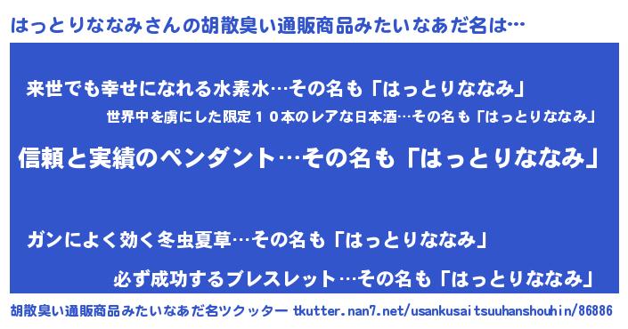 | 肩書あだ名 | 『はっとりななみ上級大将』 |