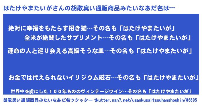 | 肩書あだ名 | 『はたけやまたいが国家主席』 |