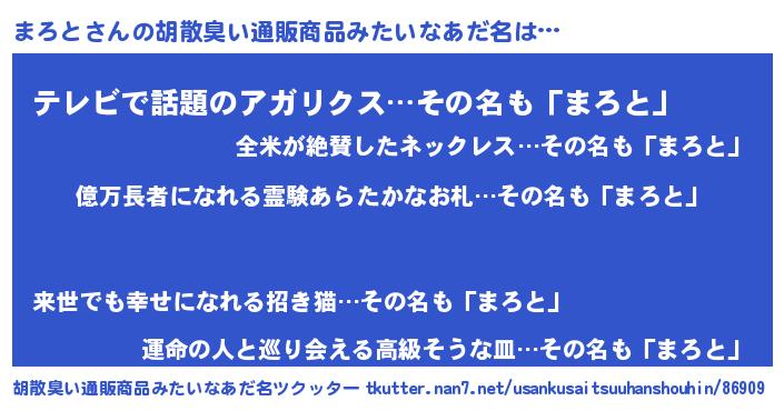 | ピコ太郎風あだ名 | 『マコ十郎』『ピマ二郎』『マロ十郎』 |