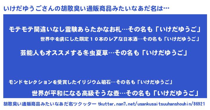| ヒーロー風カッコイイあだ名 | 『最強戦士イケダユウゴ』『仮面イケダー』 |
