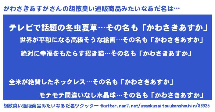 | 意味不明あだ名 | 『永久保存かわさきあすか』 |